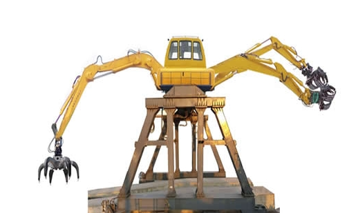 According to the requirements of the actual working conditions of Shenhua Ningmei Group's frozen coal unloading: our company designs a gantry rail type three arm frozen coal unloading machine for it, that is, at the front end of the unloading machine, we design a double arm two hand holding vibrator, hold the box plates on both sides of the car box to implement medium frequency oscillation, and unload the slightly frozen layer and the bridging coal without damaging the car body. At the same time, another single arm is designed at the back, equipped with ice breaking grab or hydraulic pickaxe, to solve the problem of freezing coal and ice breaking and the problem that unloading is not possible by bridging.